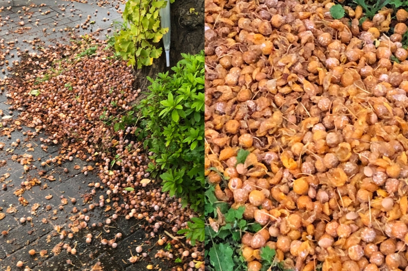 よく行くスーパーの前の道路の両側にイチョウの並木が有るのですが、銀杏が大量に落ちています。