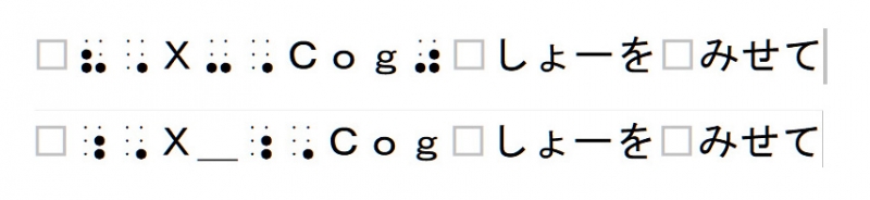 ういんびーの比較画面をそのまま書いていただくと、点字部分は他の模様に変わってしまいます。そういう場合は比較画面をそのまま書かず、文章で書いてください。