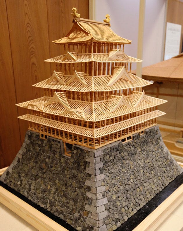 天守閣内に展示されていた軸組模型の写真。