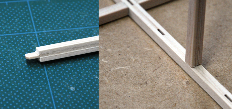5ミリ角の棒をT字型に接着する場合、木口の面積が小さすぎて少し力がかかると簡単にはずれてしまいます。