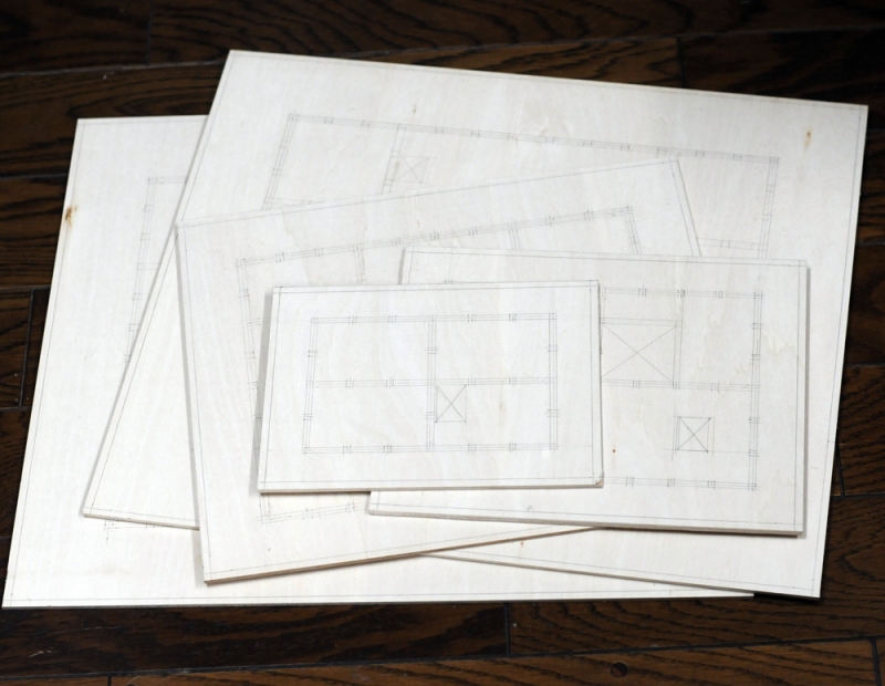 今回作る天守閣模型は、5層を積み上げる構造で、各層の内部を上から眺められるように作ります。