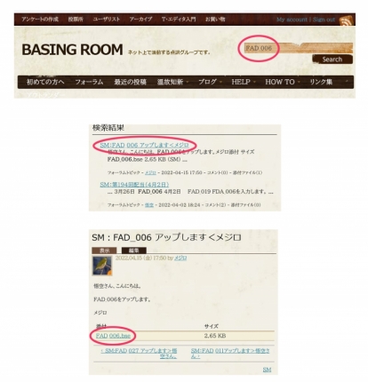 メジロさんの発言が表示されますから、下の方の「FAD_006.bse」をマウスの右ボタンクリックでダウンロードしてください。