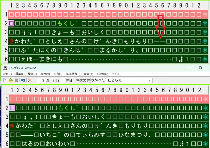 3-12 「ちは゛→ □□「ちは゛(段落を取りました)