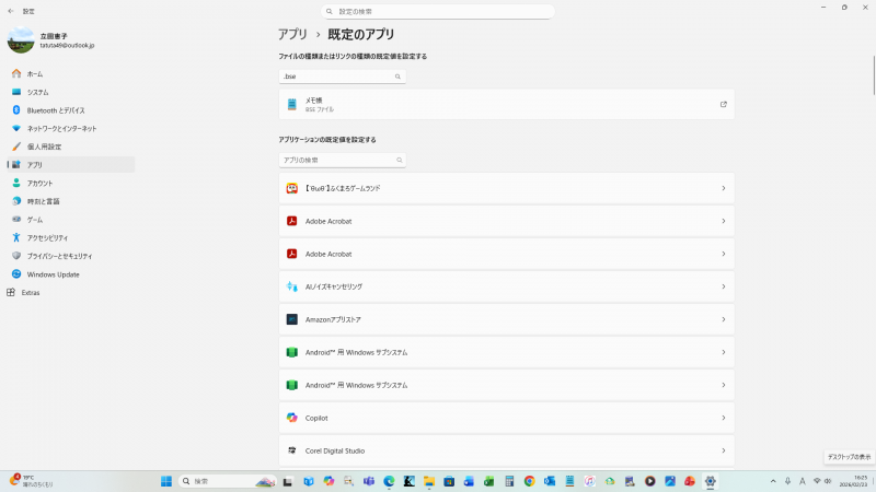 メモ帳のアイコンをクリックした時に出る、「.bseファイルの規定のアプリを選択する」の画面の一番下です。