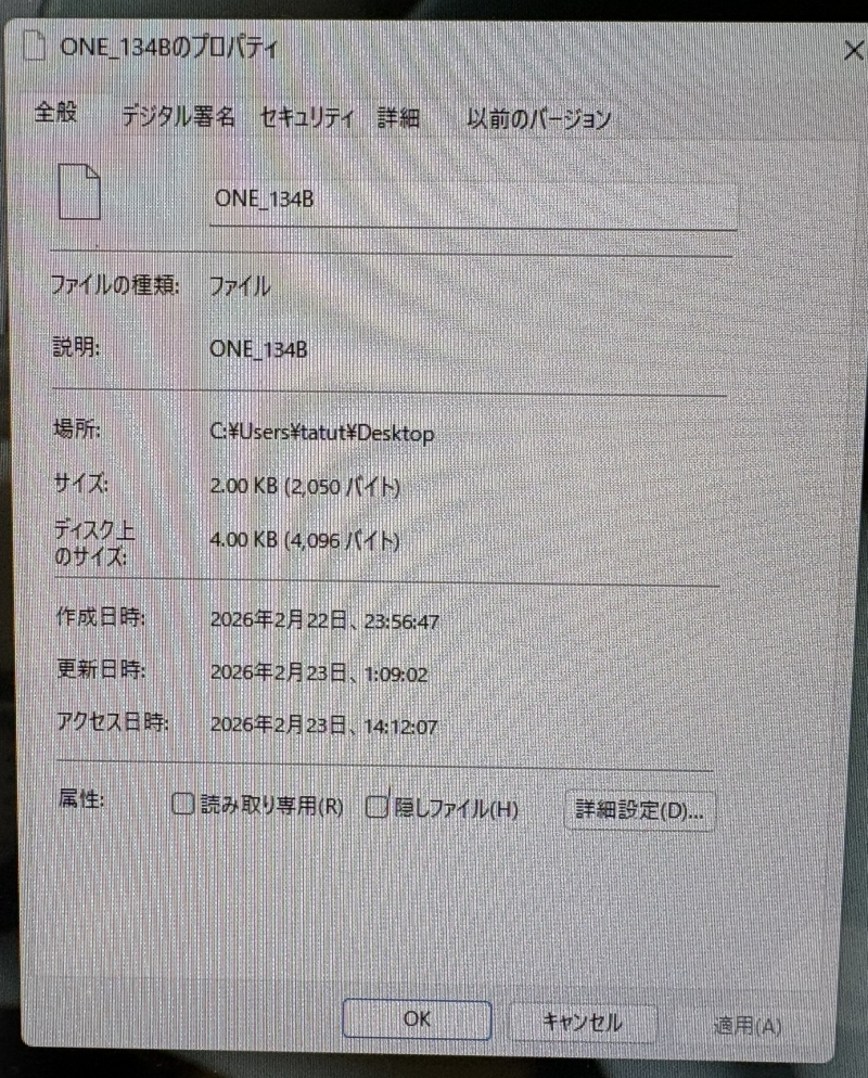 プロパティ画面が私のと違いますね。