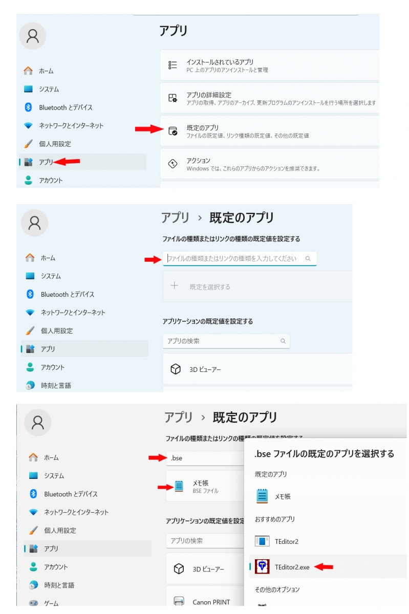 一番下の「規定値を設定する」をクリックすると、.bseファイルはTEditorで開くようになります。