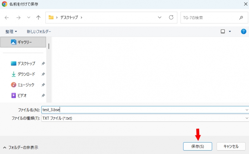 .txtが消えて、正常なBSEファイル名になったら、下の「保存」をクリックしてください。 BSEファイルが保存されているか確認してください。